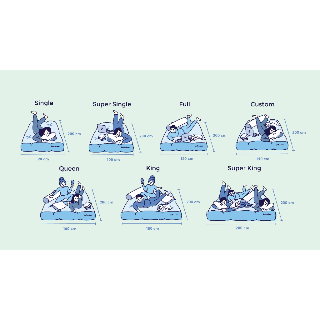 140 x 200 cm, 180 x 200 cm, 120 x 200 cm, 160 x 200 cm, 90 x 200 cm