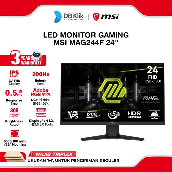 MSI LED MONITOR GAMING MAG 244F 24" IPS FHD 200HZ 0.5MS AMD FREESYNC HDR HDMI DP