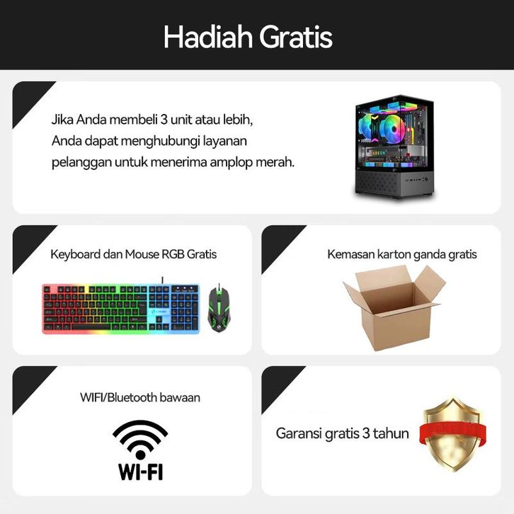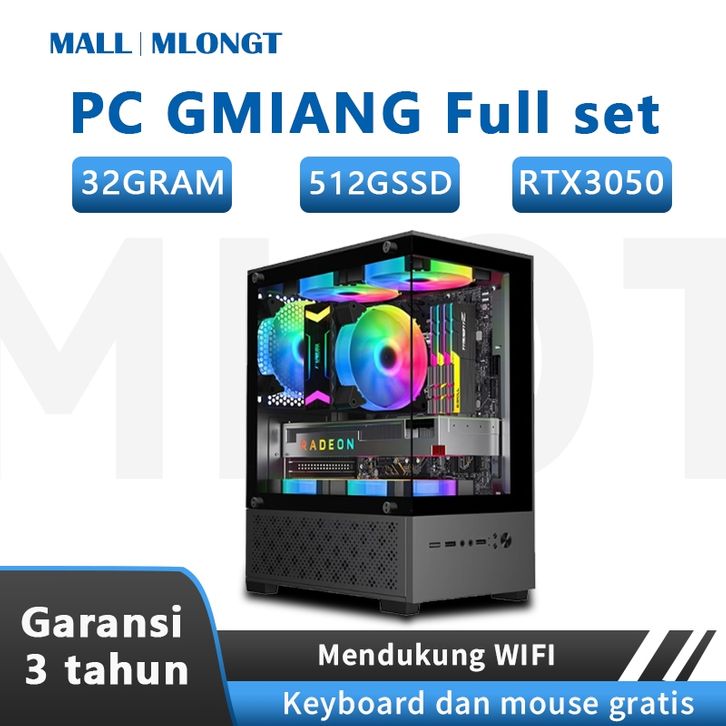 MLONGT PAKET LENGKAP PC GAMING FULL SET BARU + MONITOR, SIAP MAIN GTA V, KOMPUTER DESKTOP PERAKITAN DESAIN KANTOR