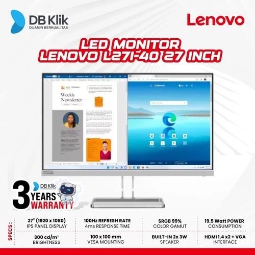 LENOVO LED MONITOR L27I-40 / L27I-4A 27" IPS FHD 100HZ 4MS / 1MS BUILT IN SPEAKER AMD FREESYNC HDMI VGA