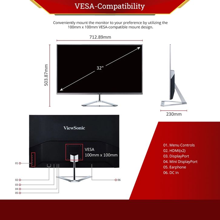 VIEWSONIC VX3276-2K-MHD-2 32" WIDESCREEN IPS 1440P FRAMELESS MONITOR