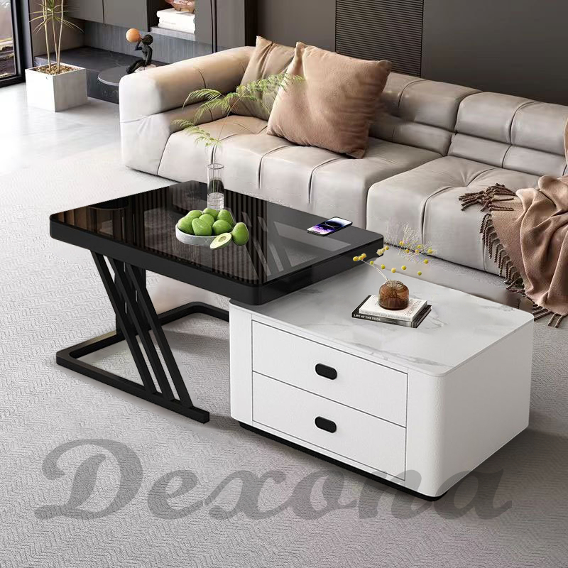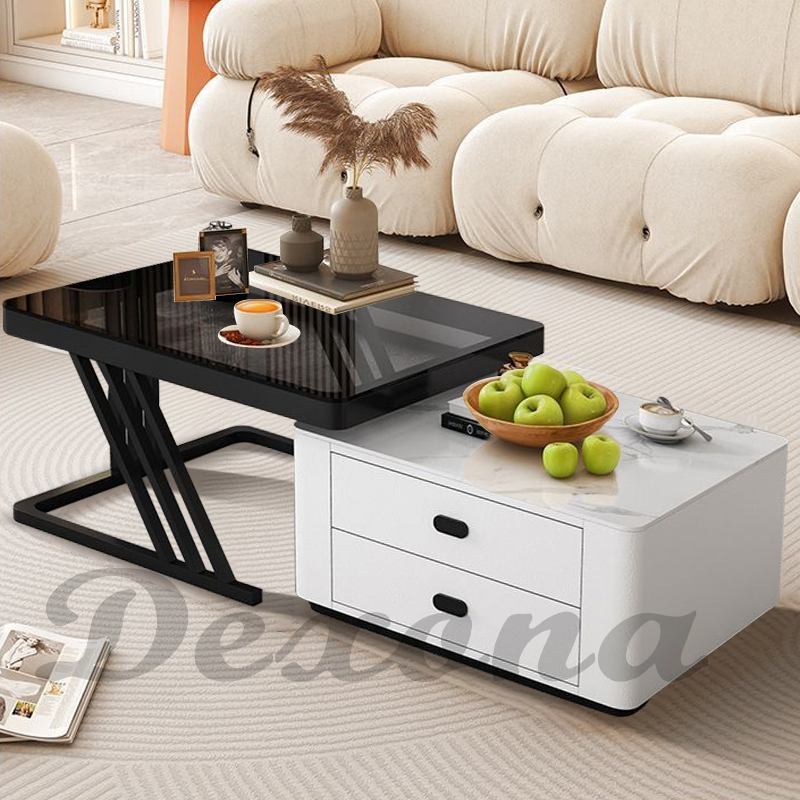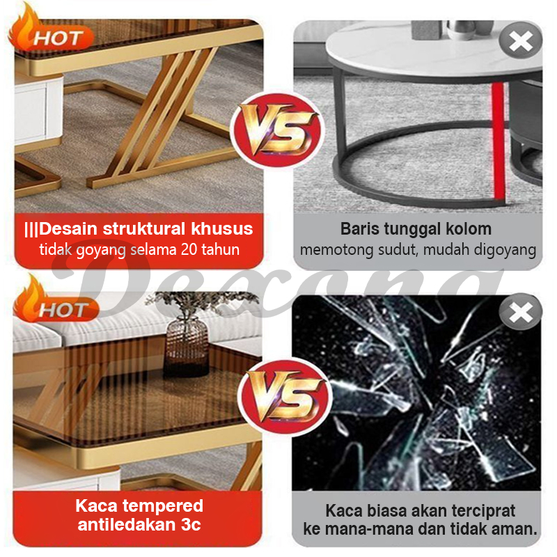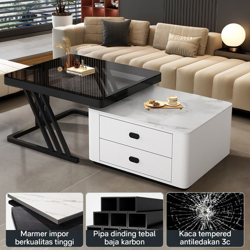 Meja Kopi Minimalis Meja Tamu Minimalis70+60 cm Marmer + Kaca Tempered meja persegi aesthetic