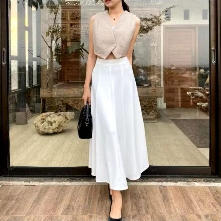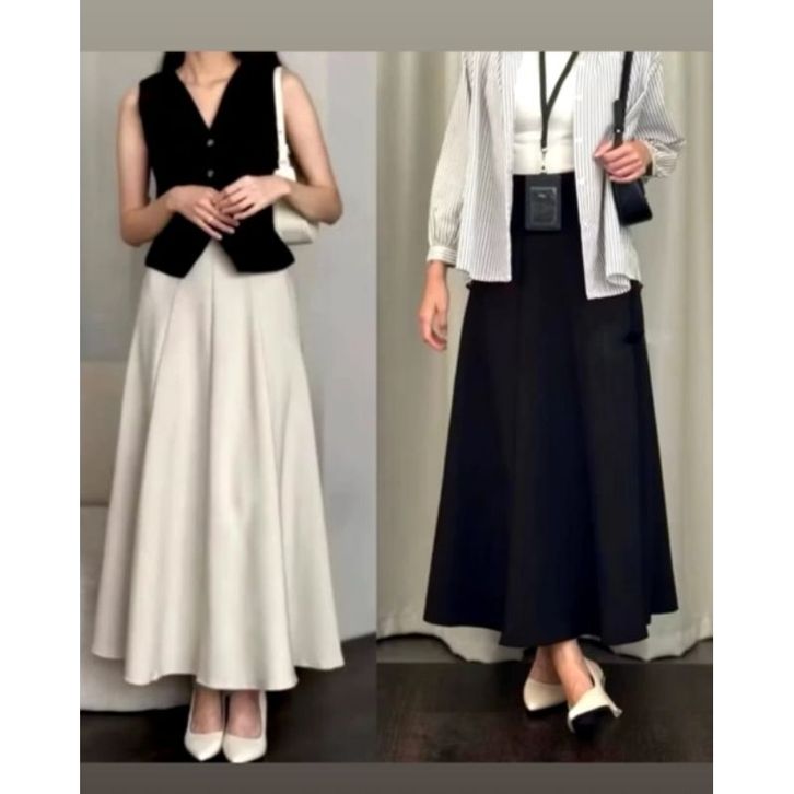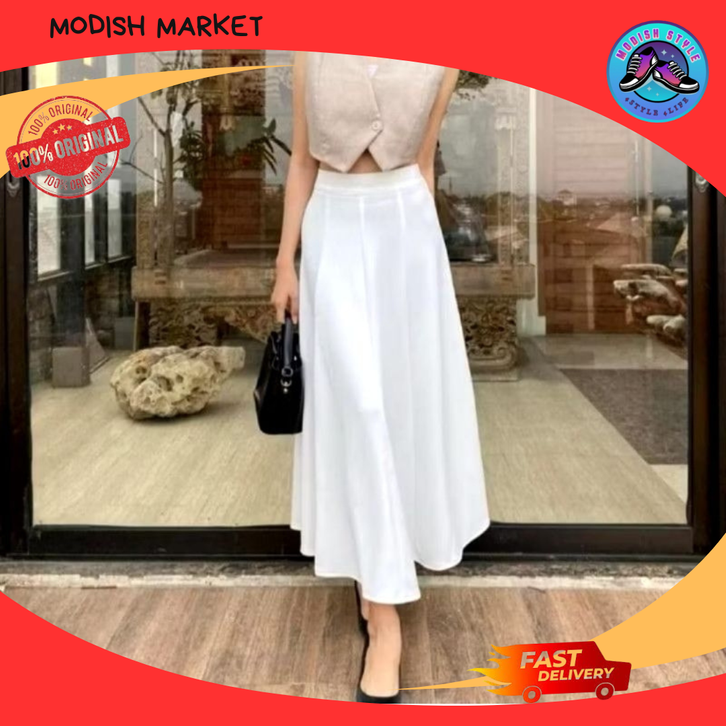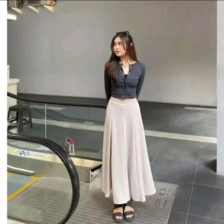 Audy Skirt Korean Loose Maxi Skirt Rok Wanita Anti Kusut Polyester Rok Flare Wanita Rok Basic Polos Maxi Rok Panjang Wan