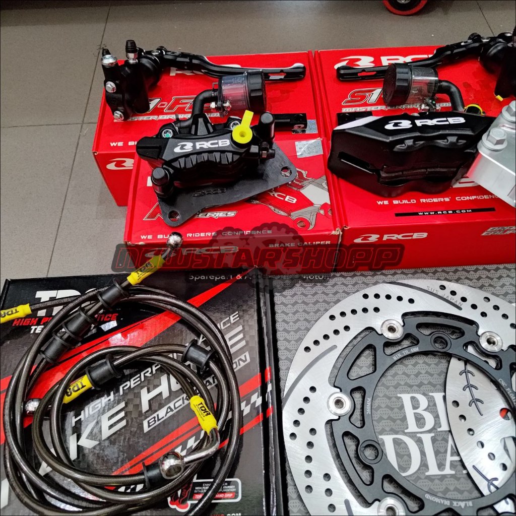 Paketan Master Rem RCB S1 FL 17mm + 14mm Kanan kiri set Radial + Kaliper depan RCB R1 4 Piston 4p breket cnc + kaliper B