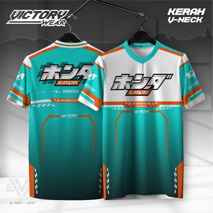 JERSEY RACING HONDA GANK CUSTOM POLO KERAH KANCING V-NECK, KAOS SATUAN, BAHAN FULLPRINT VW37