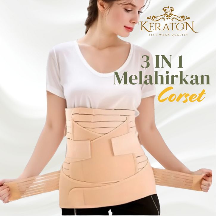 TERBARU KERATON Korset Ibu Pasca Melahirkan 3 In 1 Pelangsing Stagen Pengecil Perut Buncit uhemnmn