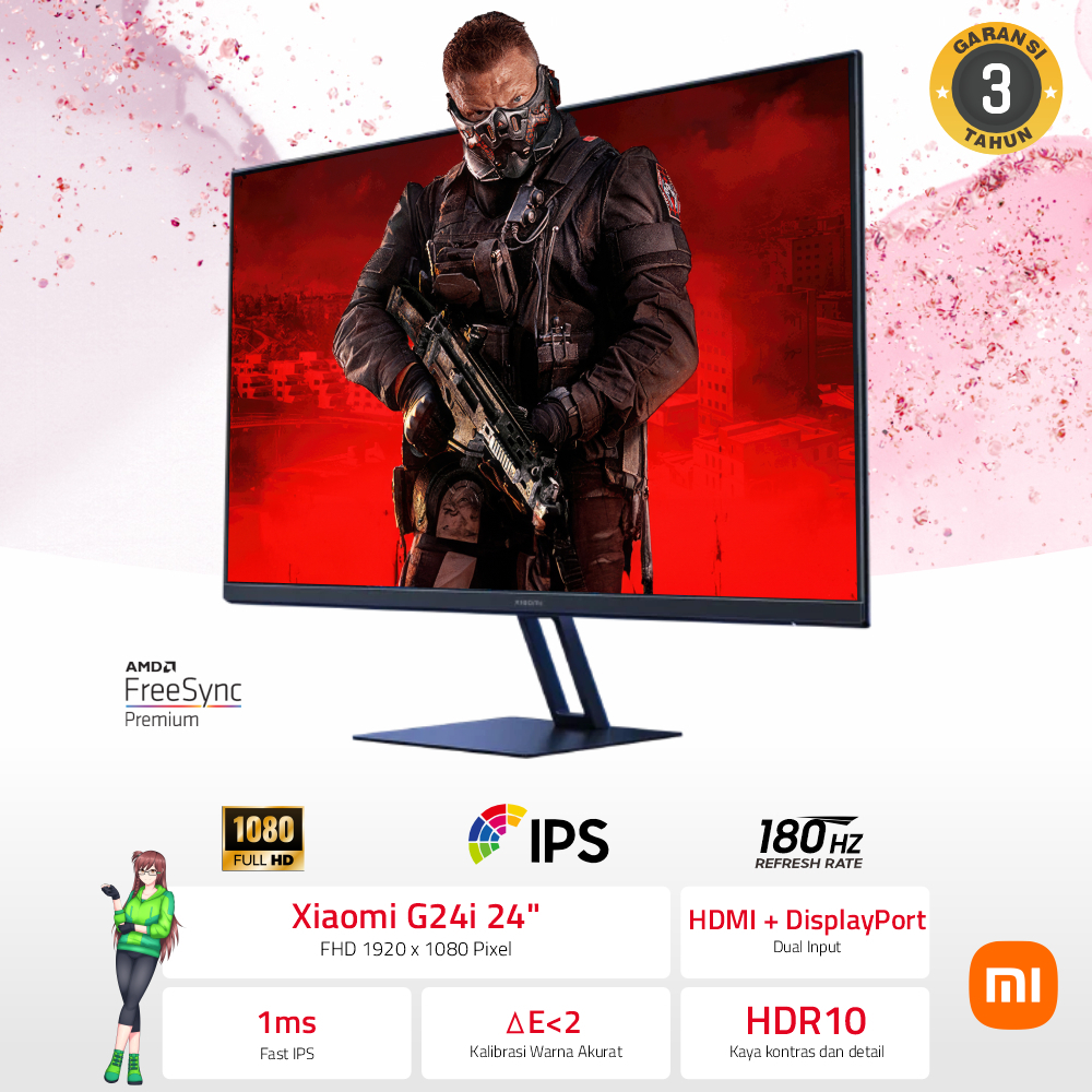 Monitor Xiaomi 24" G24i Full HD IPS 180Hz 1ms GTG HDR10 HDMI DisplayPort Borderless