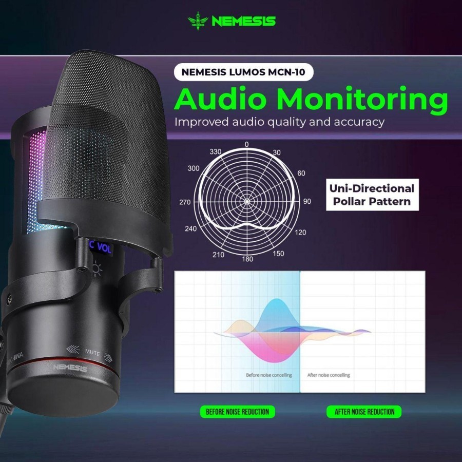 [Mall] NYK NEMESIS LUMOS MCN-10 / MCN10 MIC CONDENSER RGB WITH NOISE CANCELLING MICROPHONE MIC
