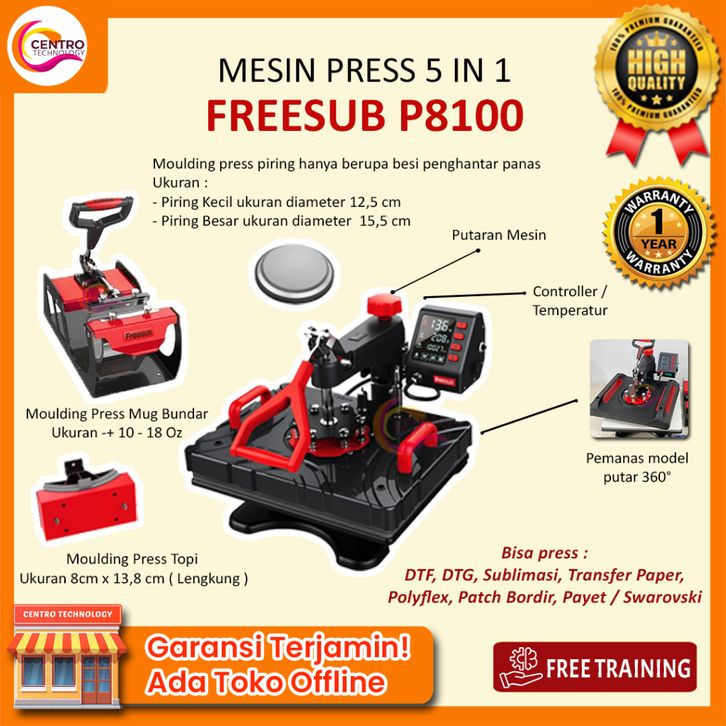 Mesin Press COMBO All In One 5in1/8in1 | Cetak Mug, Kaos, Topi, & Piring FreeSUB P8100 - FreeSUB F910