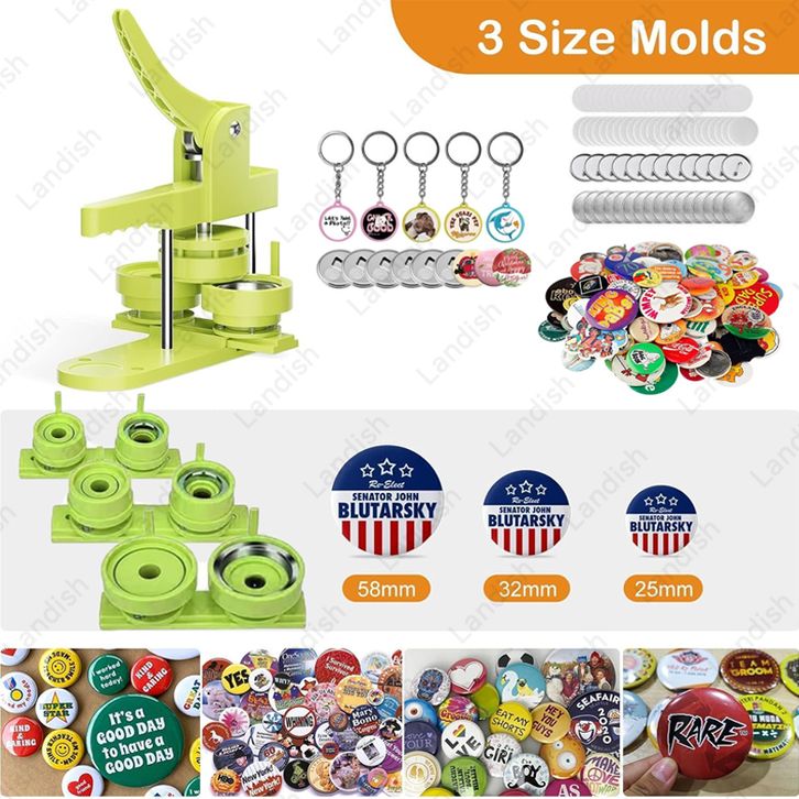 ✅READY&SET LENGKAP Mesin Press Pin Moulding 25/32/58mm Bahan Plastik + 100PCS9ratis. Alat DIY Cetak Lencana Anime, Broo