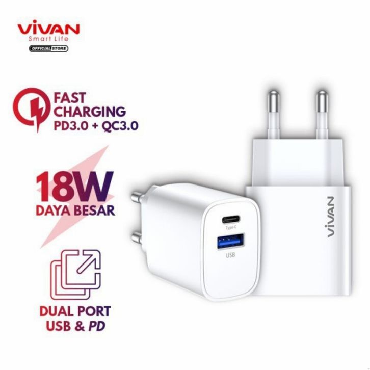 Charger 18 W Dual Port Charger Power Turbo 18 QC 3.0+PD Putih Aksesoris Hp