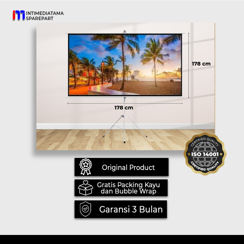 Screen Proyektor Tripod 70 inch (178 cm x 178 cm)