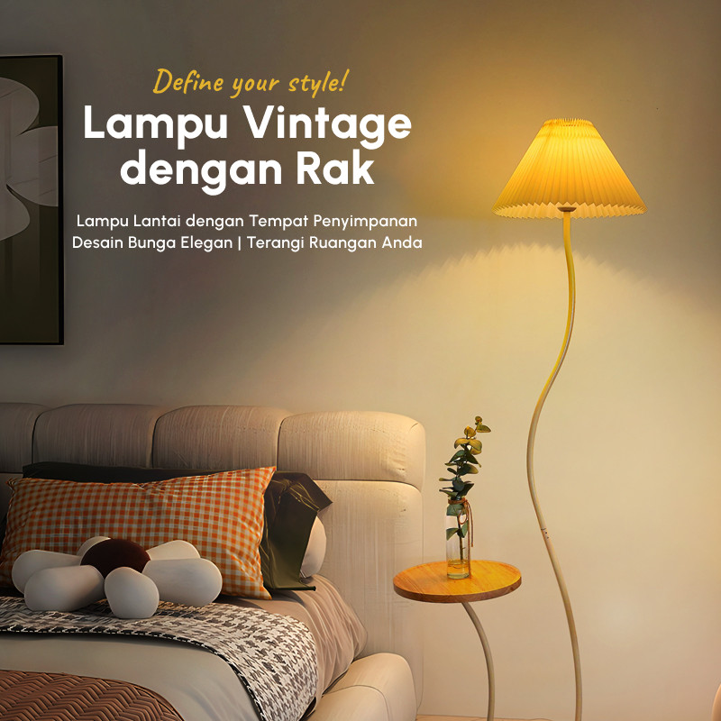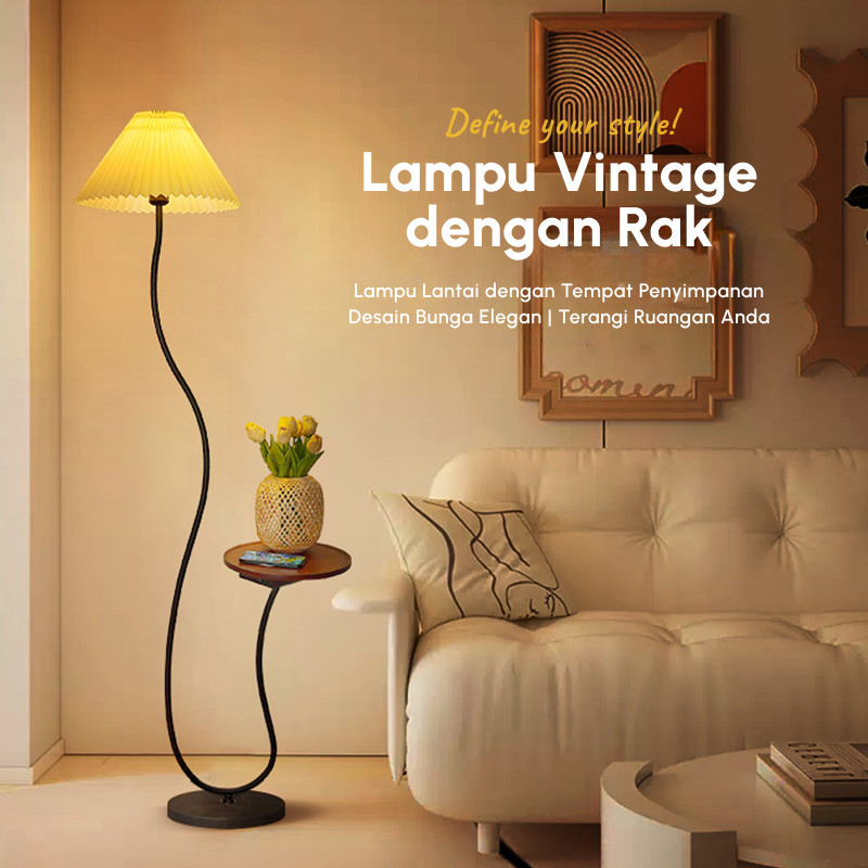 Lampu Lantai LED Meja Sofa - Lampu Kamar Minimalis Modern, Lampu Meja Dekorasi Mewah dengan Rak Penyimpanan, Pencahayaan