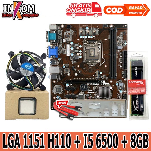 Mobo Motherboard Intel Socket LGA 1151 H110 Onboard Plus Processor I5 dan Ram