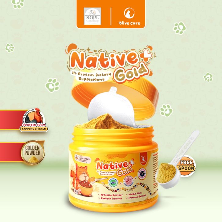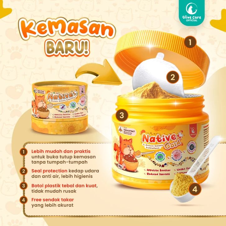Olive Care Vitamin Kucing NATIVE + GOLD Protein Tinggi 110gr untuk Penambah Nafsu Makan, Penggemuk Berat Badan, Gembul,