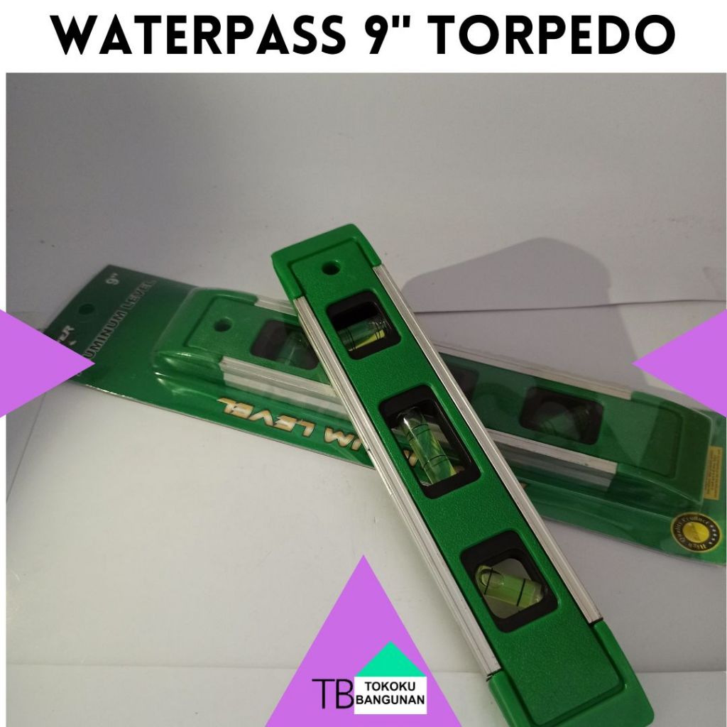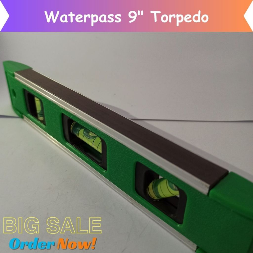 waterpass 9 in torpedo mini magnet 22.5 cm alat ukur alumunium warna