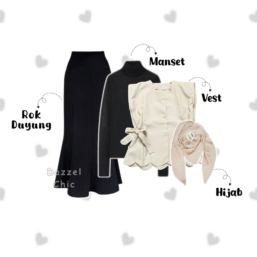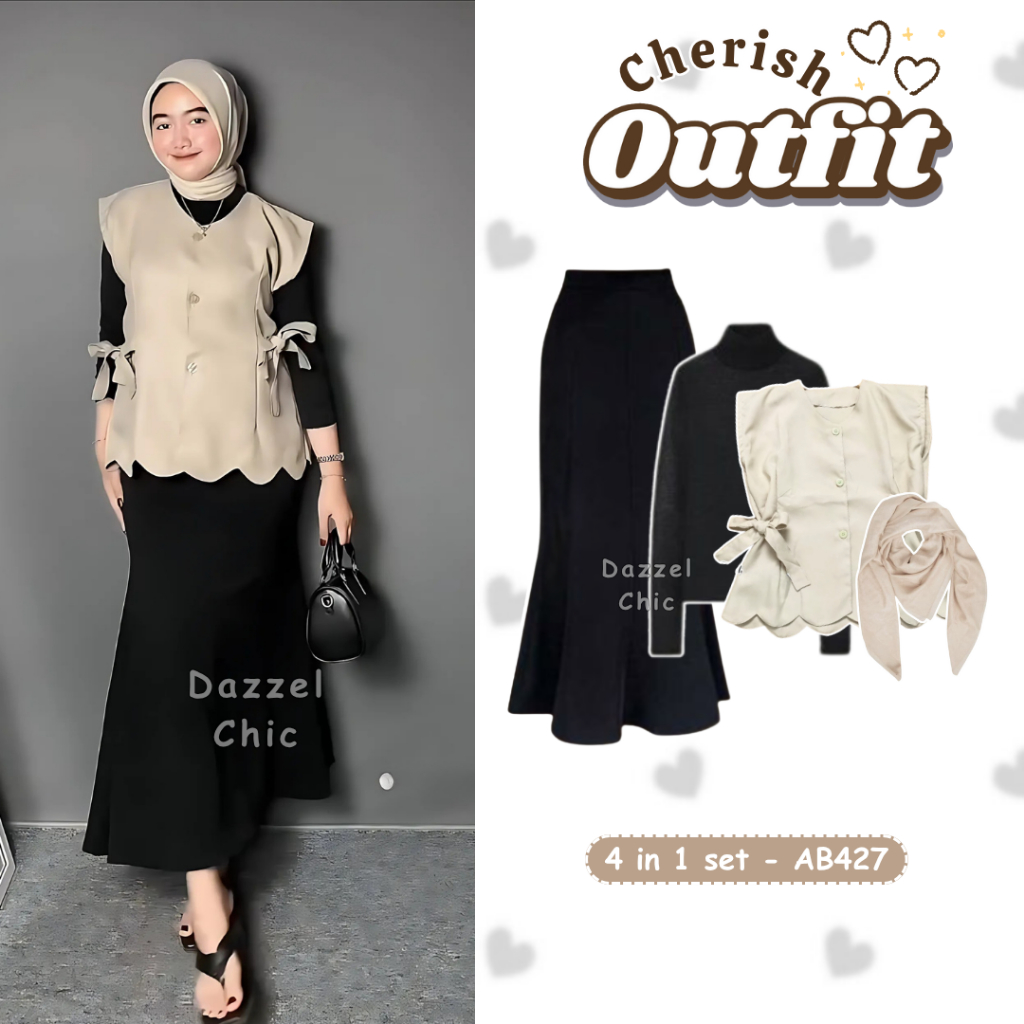 [Mall] DAZZELCHIC OOTD CHERISH 4 IN ONE SET KOREAN STYLE ( VEST - MANSET - BELLA SQUARE - ROK SPAN DUYUNG ) CHERISH VEST WANITA KEKINIAN - SET AB427