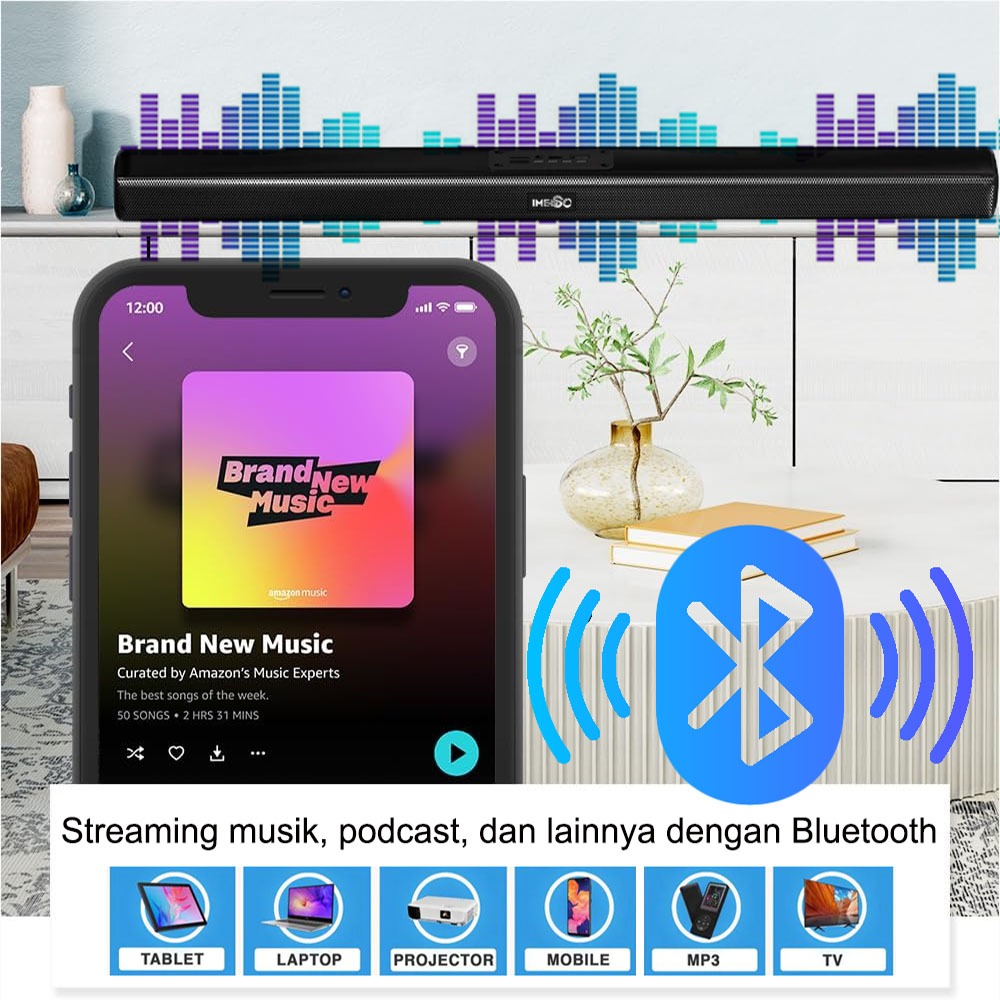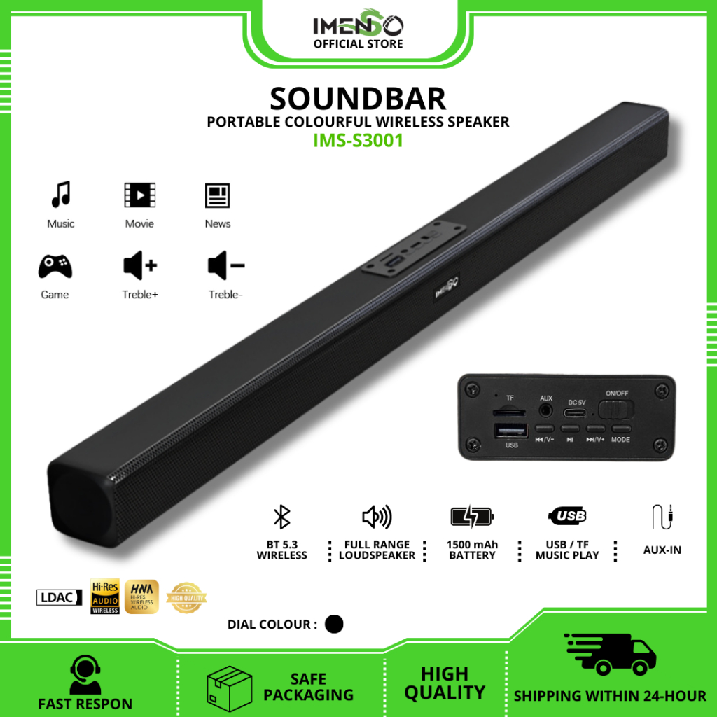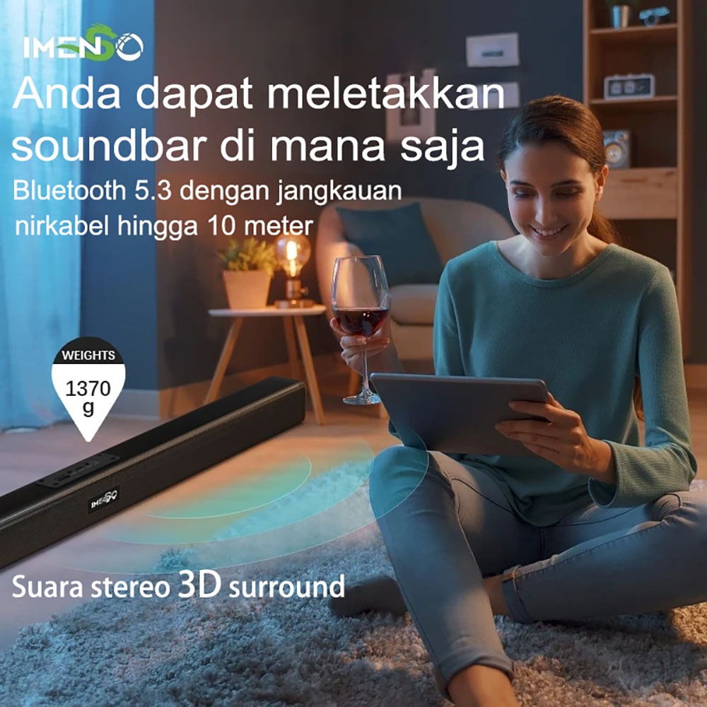 IMENSO Speaker Soundbar Baretone TV Full Bass Bluetooth Nirkabel 5.3 Home Theater