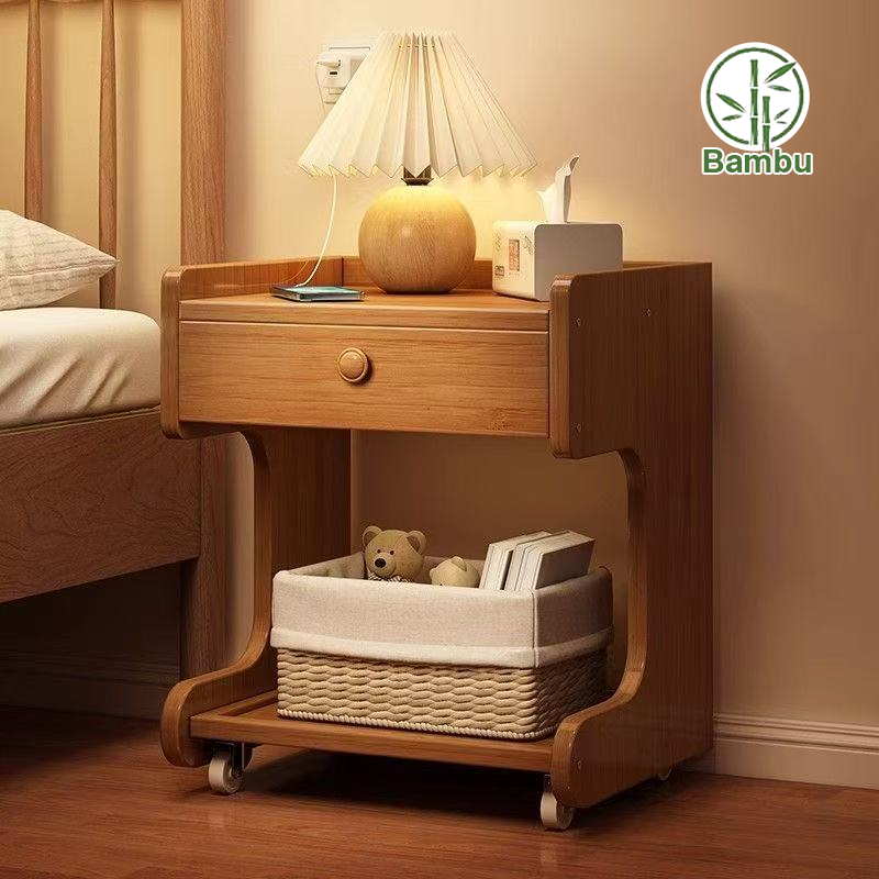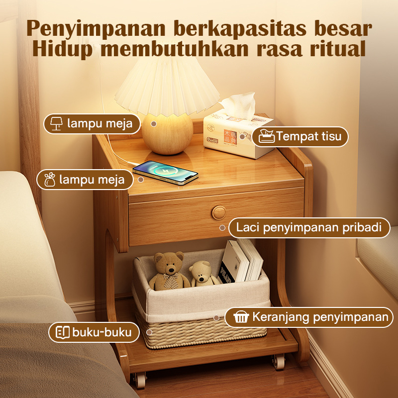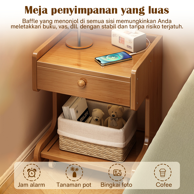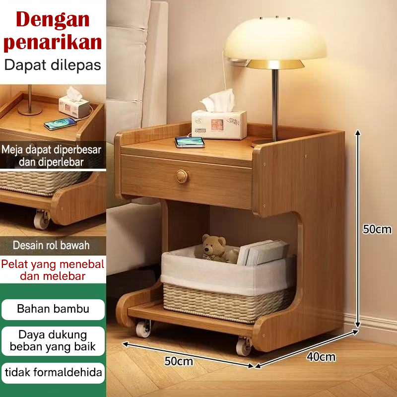 ⭐50cm&Bambu⭐Meja Nakas Dapat Dilepas/Bedside Table Minimalis/Kecil Samping Kasur Dengan Roda Lemari Laci Penyimpanan Mej