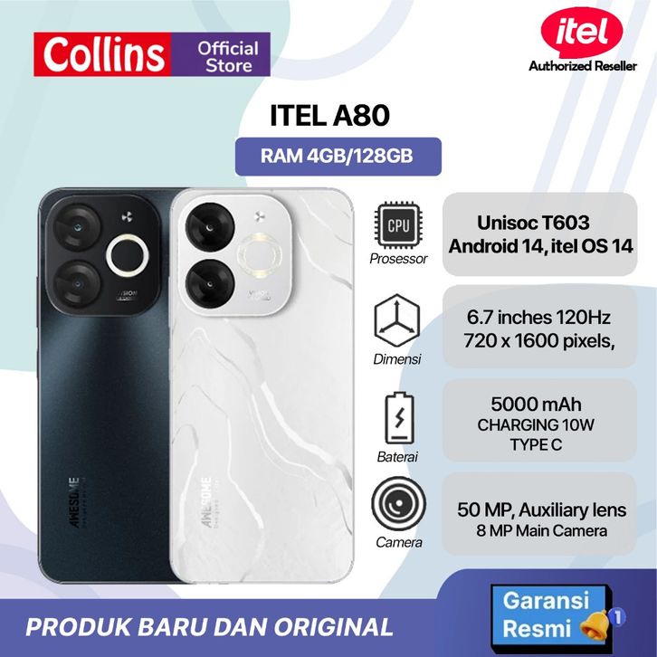 itel A80 4+4/128GB Memory - 50MP Super HDR Camera - Pioneering Design - 6.7" Punch Hole with Dynamic Bar - BLACK BLUE