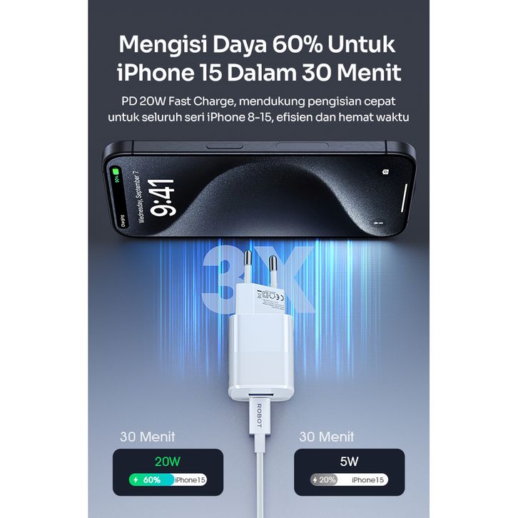 Charger RTF7 Dual Port USBA / USB Type C to Lightning 20W 3A Original Fast Charging QC PD Aksesoris Hp