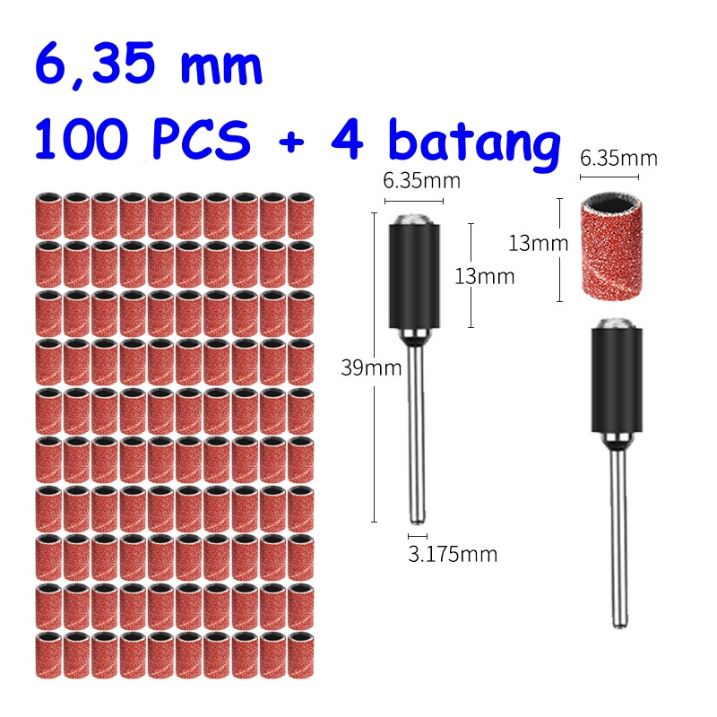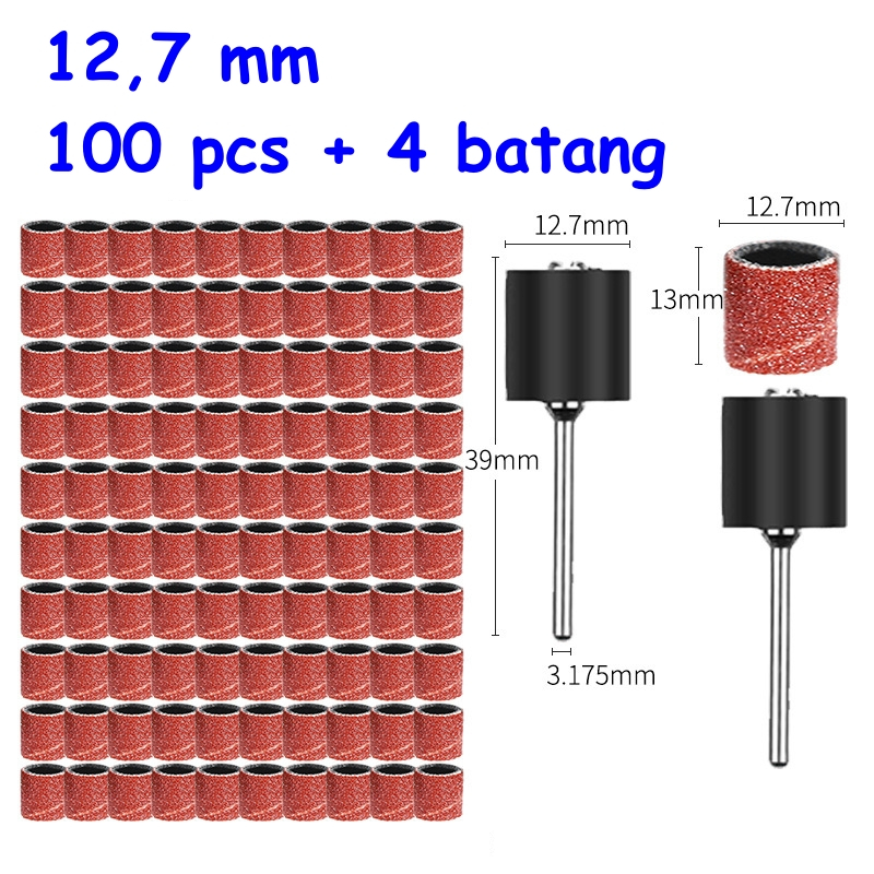 100 Pcs + 4 Mandrel Ring Amplas - Nail Art Sanding Bits - Amplas Ring Roll Drum