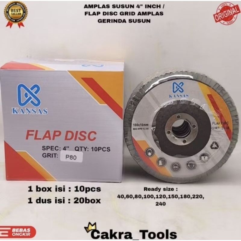 AMPLAS SUSUN 4" ( HARGA PER 1 BOX ) FLAP DISC GRID AMPLAS GERINDA SUSUN