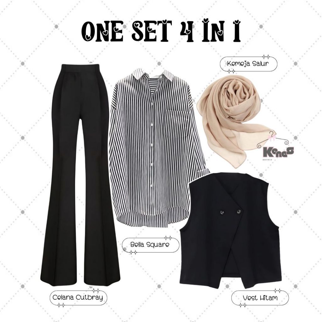 [Mall] ONE SET 4 IN1 (VEST, KEMEJA, CELANA CUTBRAY, BELLA SQUARE) HIJAB STYLE OUTFIT KOREA OOTD NGANTOR KN7