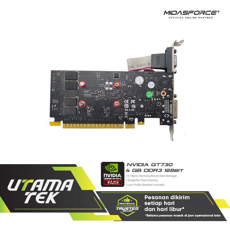 VGA Nvidia Midasforce GT730 DDR3 128bit 4GB LP Garansi 2 Tahun