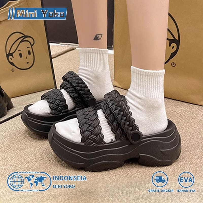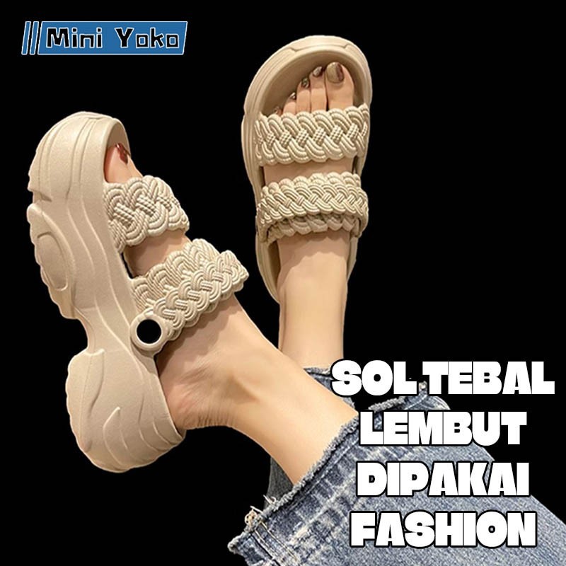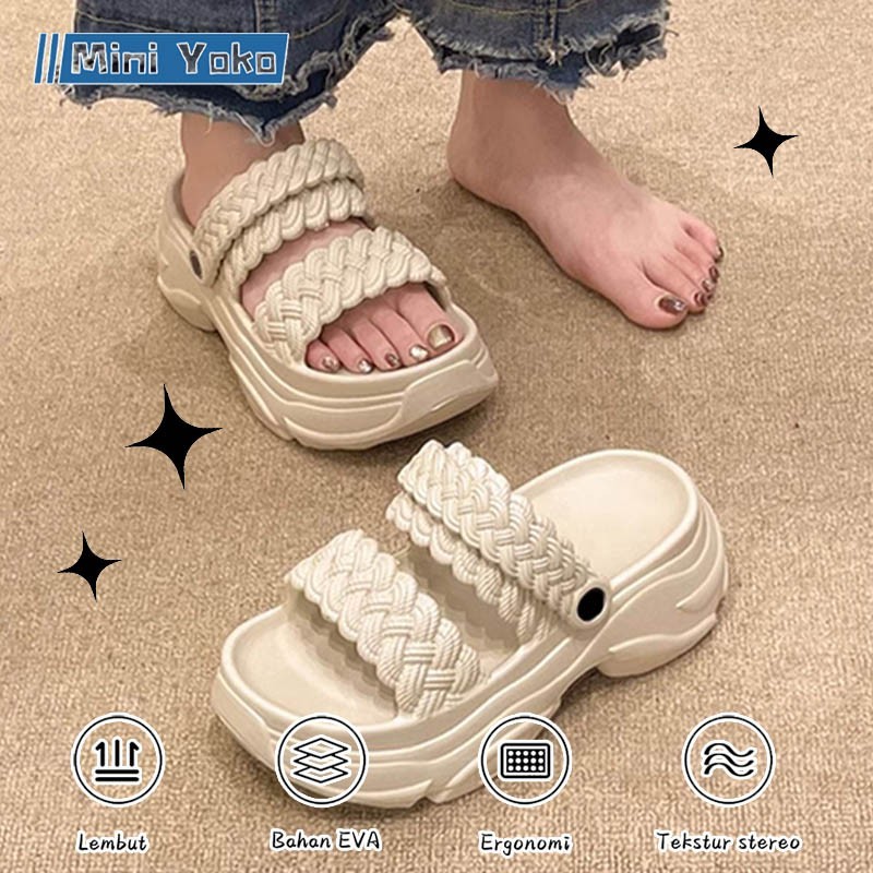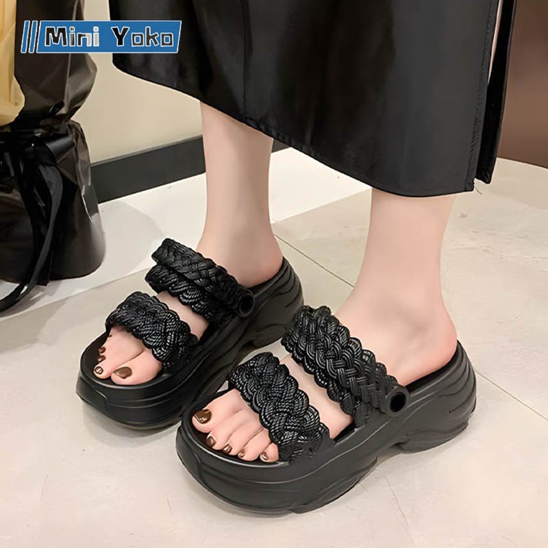 Sandal Wanita Kekinian Selop Jelly 2025 Sandal Wedges Tinggi Ringan Sandal Wanita Elegan Tebal Empuk Eva Non-Slip