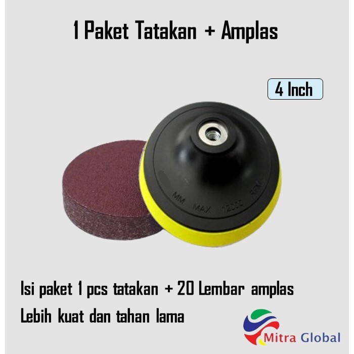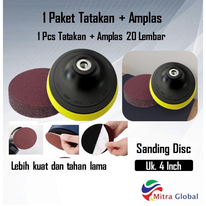 Paket Amplas Bulat + Tatakan Amplas Velcro Gerinda Tangan / Pad Perekat Amplas Tempel