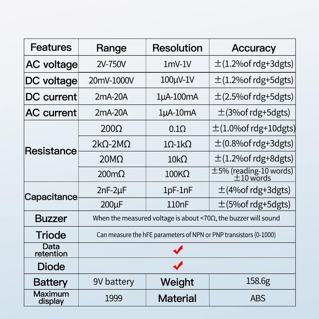 DT-9205A Multimeter Avometer Multitester Digital DC AC Diode TR/DT9205A Digital Multitester Avometer DT-9205A Multi Test