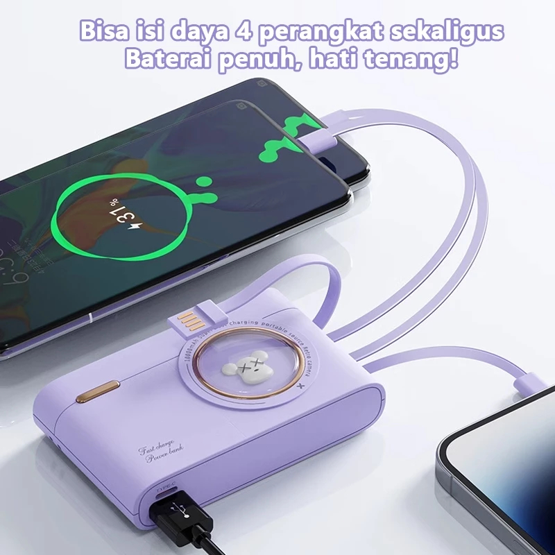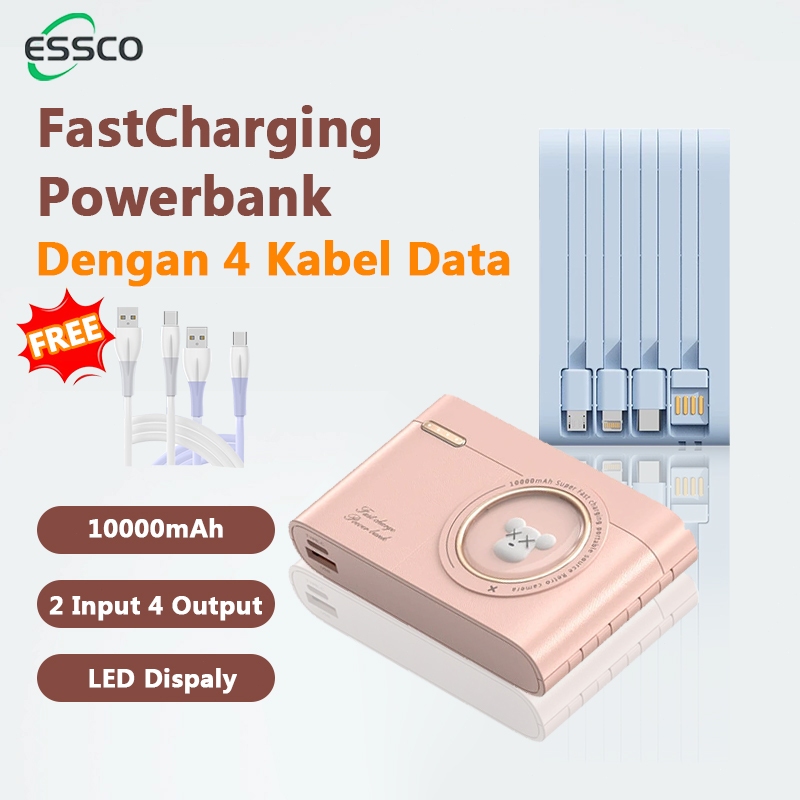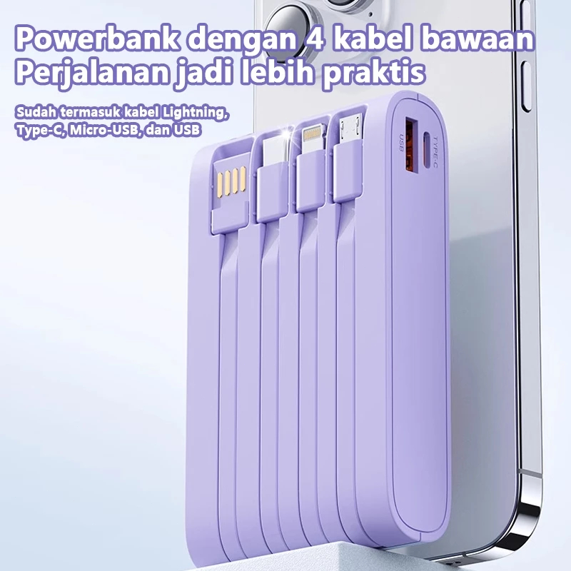 PowerBank Fast Charging 10000mAh Cute LED 4 Kabel Usb Type-C Micro For Iphone/Android 100 PERSENORI