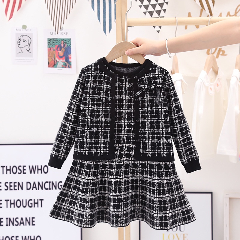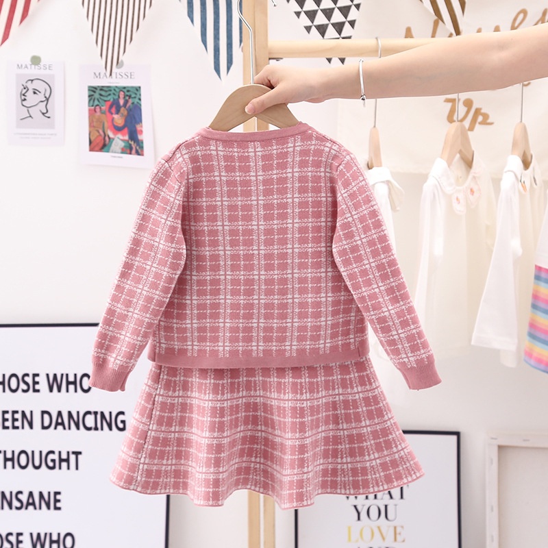 SETELAN BAJU ANAK TARTAN KIDS CARDIGAN DRESS ONE SET RAJUT BAJU ANAK PEREMPUAN UMUR 1 - 6 TAHUN