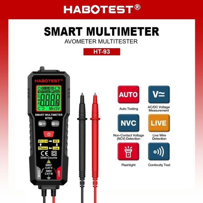 HABOTEST Digitale Multimetro Tester di Tensione Penna NCV AC/DC Originale AC/DC Ohm Ammeter Multimeter Portatile HT93