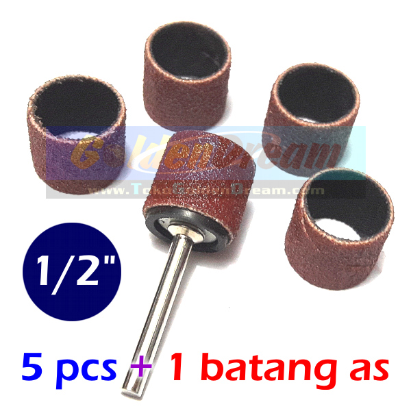 Paket Set Amplas Ring 1/2 inci 5pcs dan Batang As Mini Grinder Kertas Pasir Gosok Bulat