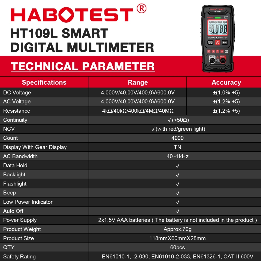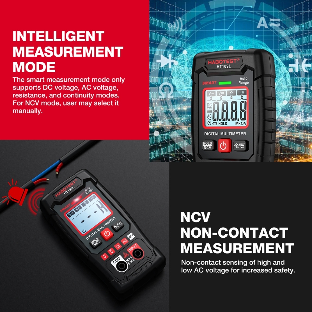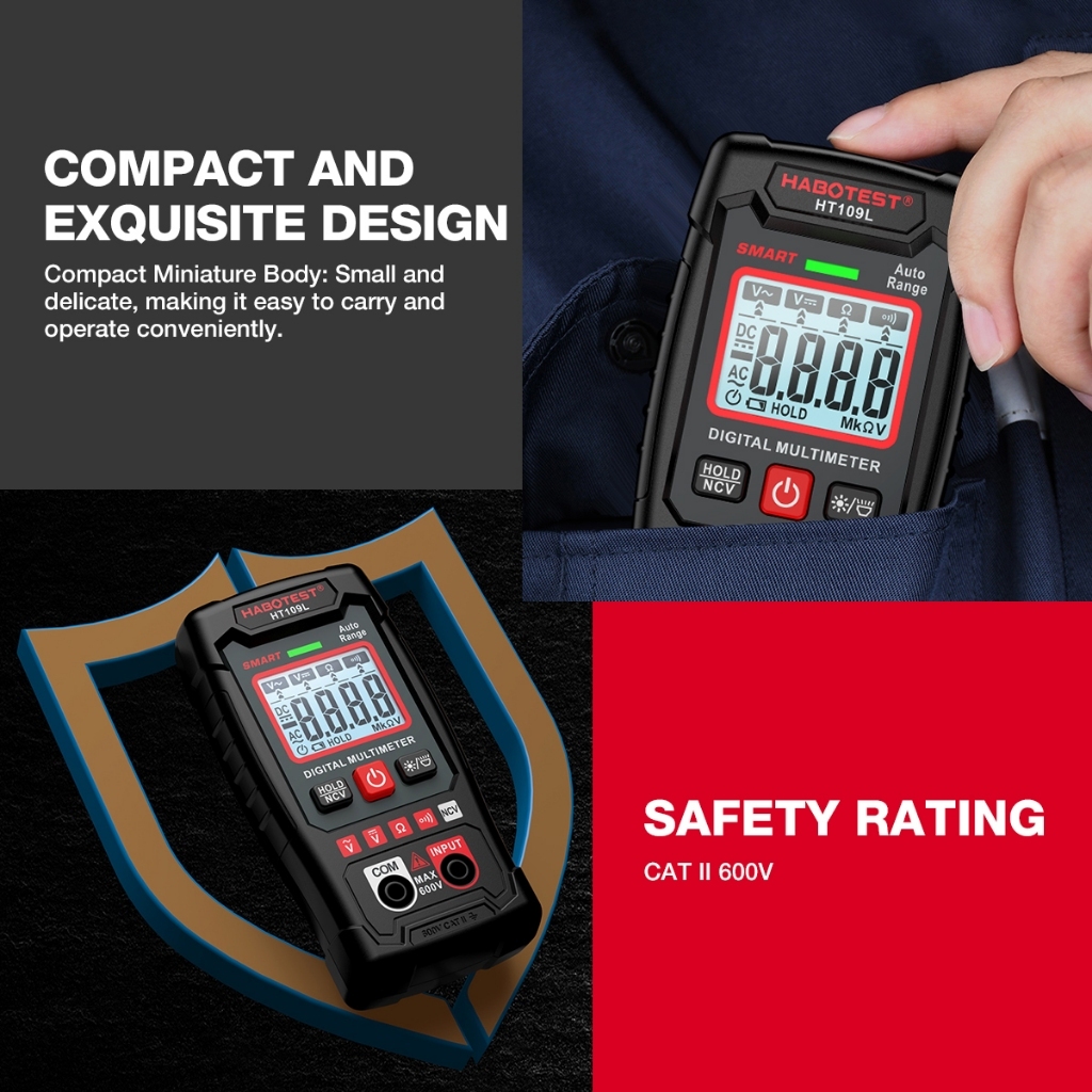 HABOTEST HT109L Digital Multimeter 600V AC/DC 4000 Counts High-Precision Anti-Burning Smart Multimeter /No Need To Shift