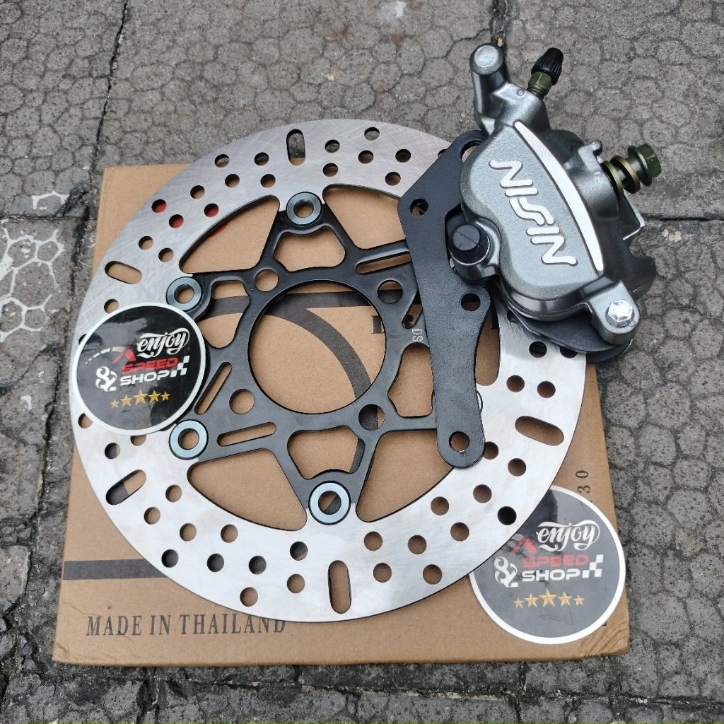 Paket Breket / Bracket Plat Besi Plus Kaliper Nissin Samurai Disc 220 motor Beat Scopy Vario Lubang 4