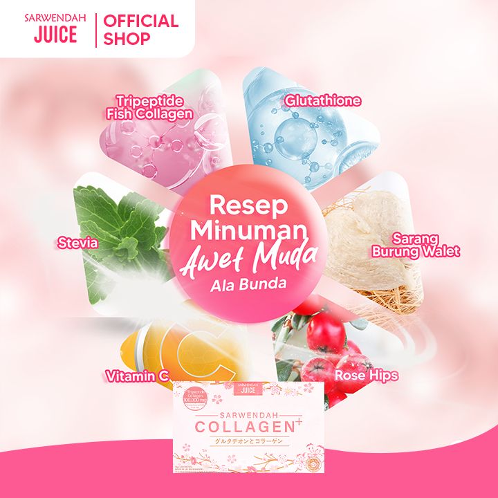 Sarwendah Juice Collagen 20 Sachet Sarwendah Collagen Rasa Strawberry & Apel 1 Box 20 Sachet