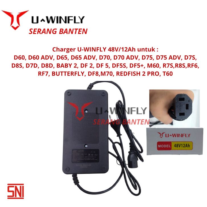 TERLARIS Charger Sepeda Listrik ORIGINAL Uwinfly 48V12Ah D60 / D60ADV / D65 / D65ADV / D70 / D75 / D7S / D8S /