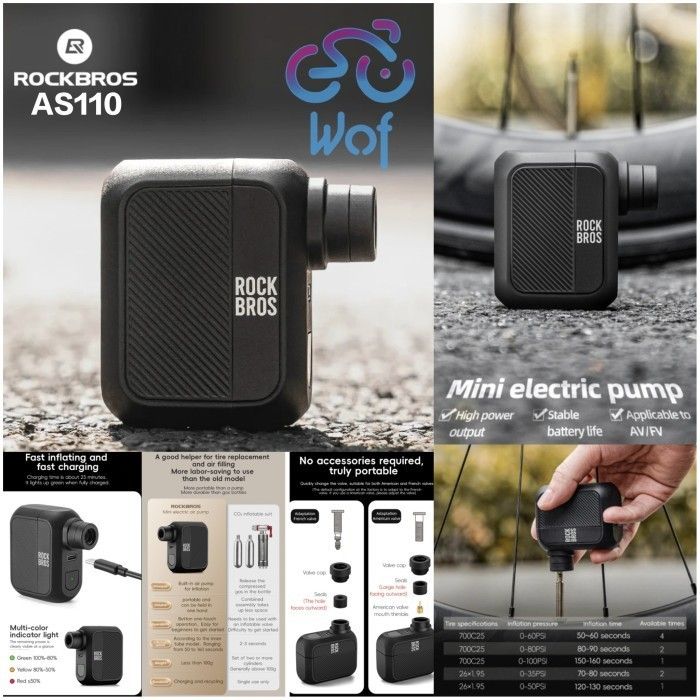 Promo ROCKBROS AS110 Pompa Kecil Elektrik Sepeda Motor Bike Mini Portable Electric Air Pump 100PSI 5V Type-C Rechargeab