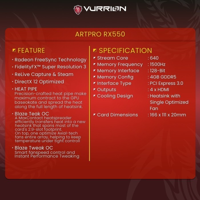 VGA VURRION RX 550 4GB GDDR5 128Bit GAMING VGA ORI