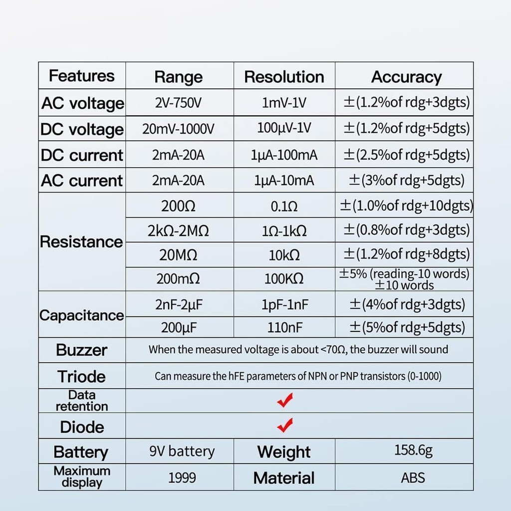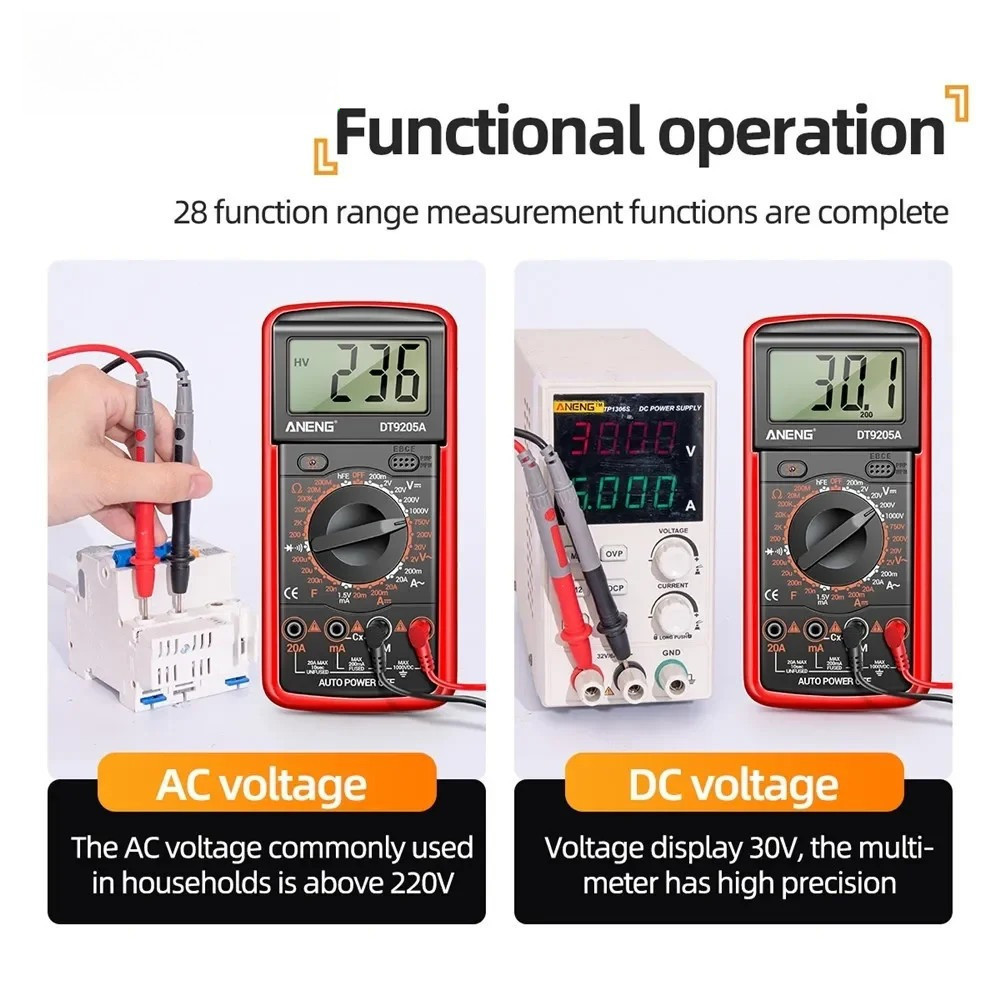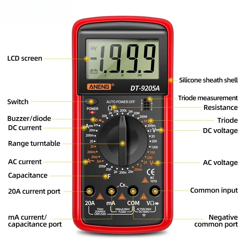 Multimeter Avometer Multitester Digital DC AC Diode TR/DT9205A Digital Multitester Avometer DT-9205A Multi Tester Layar