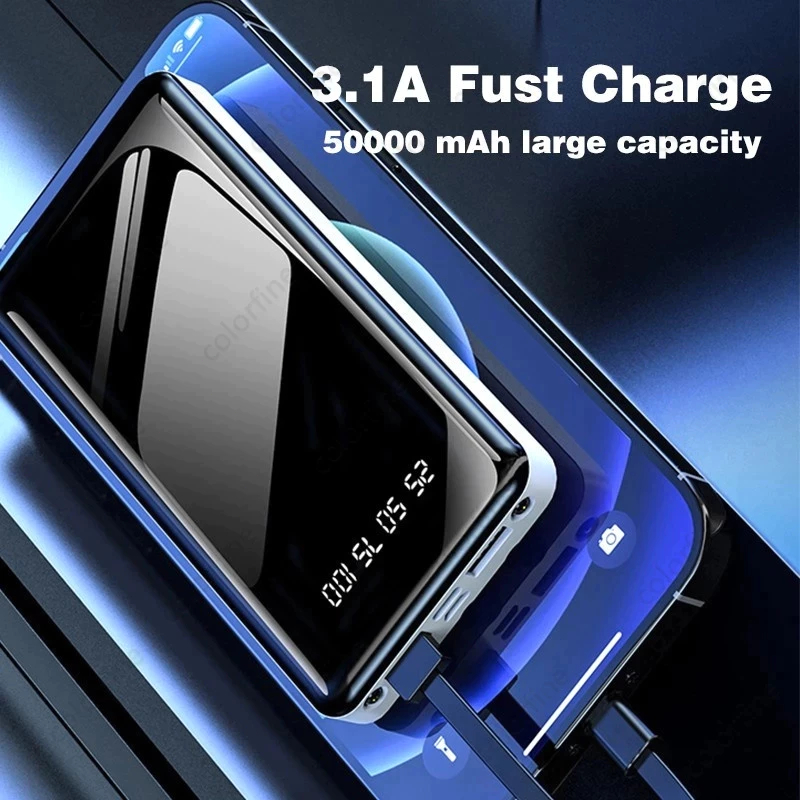 【Ready】80000mAh power bank built-in 3-wire portable fast charging full screen power bank external battery charger 50000mAh/80000mAh