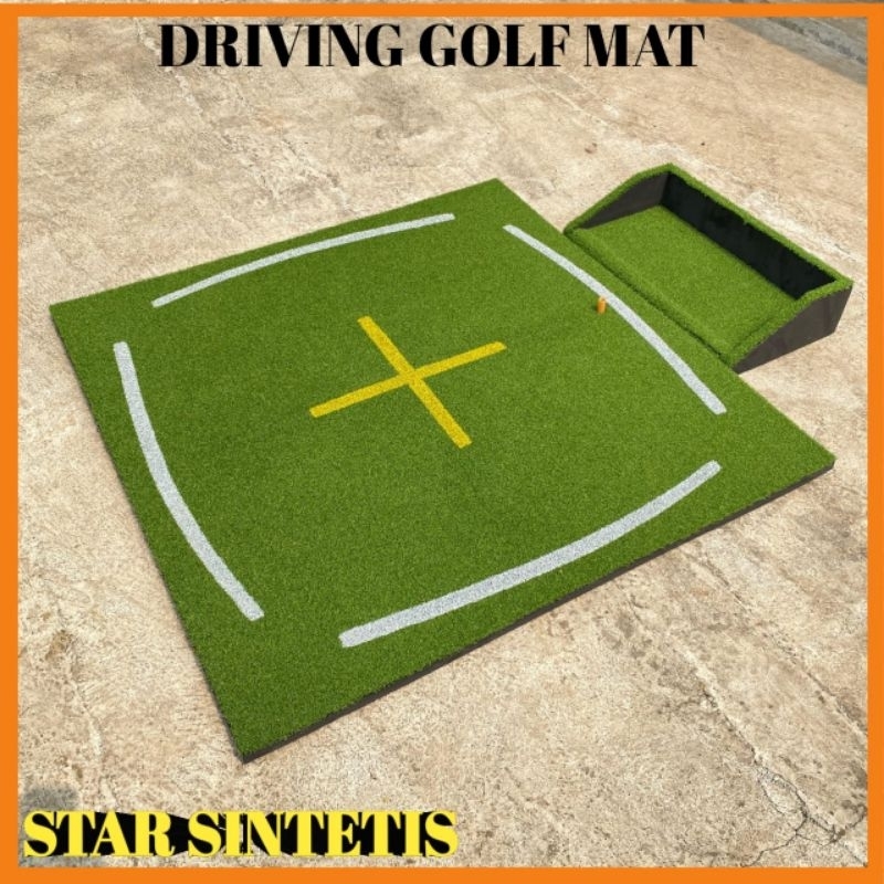 Paket Driving Golf Mat Ukuran 150 cm x 150 cm + Tray Bola Golf Free Tee Premium