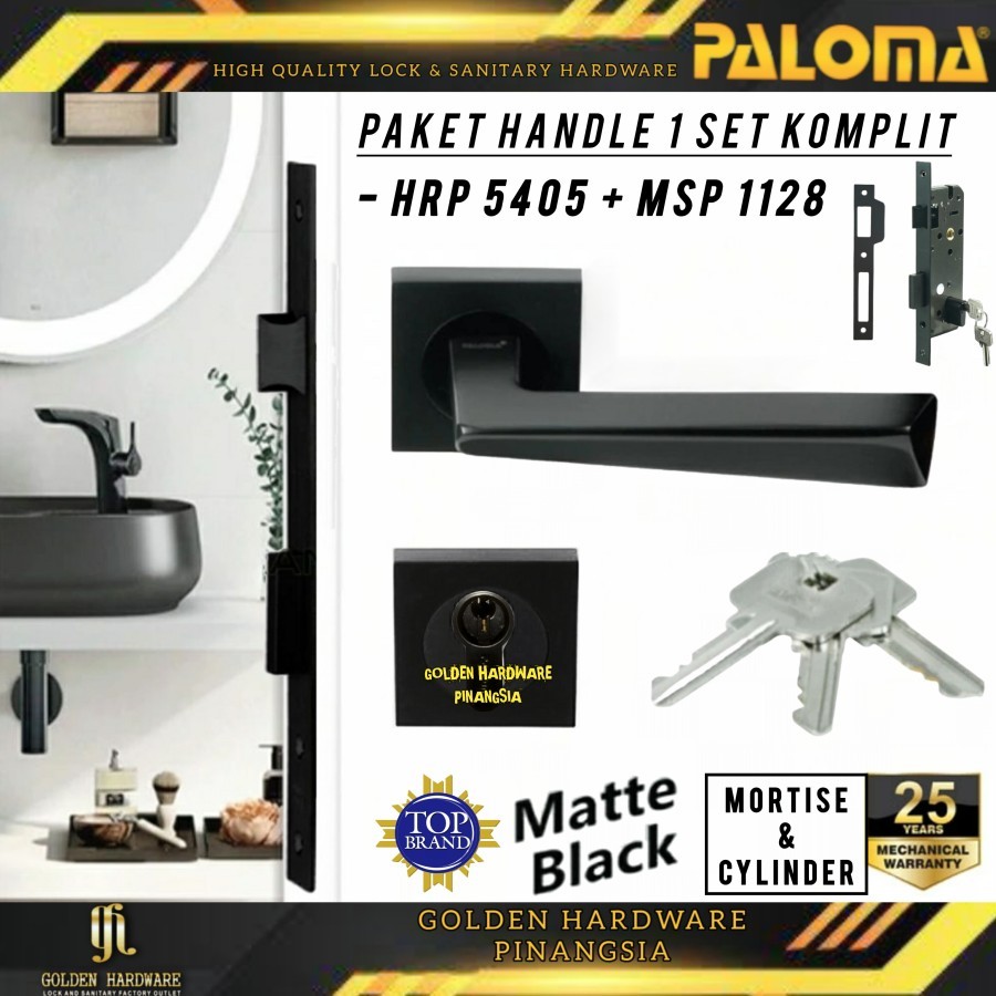 PAKET HANDLE KUNCI TARIKAN GAGANG PINTU RUMAH LOCK SET HITAM BLACK PALOMA HRP 5405 MSP 1128