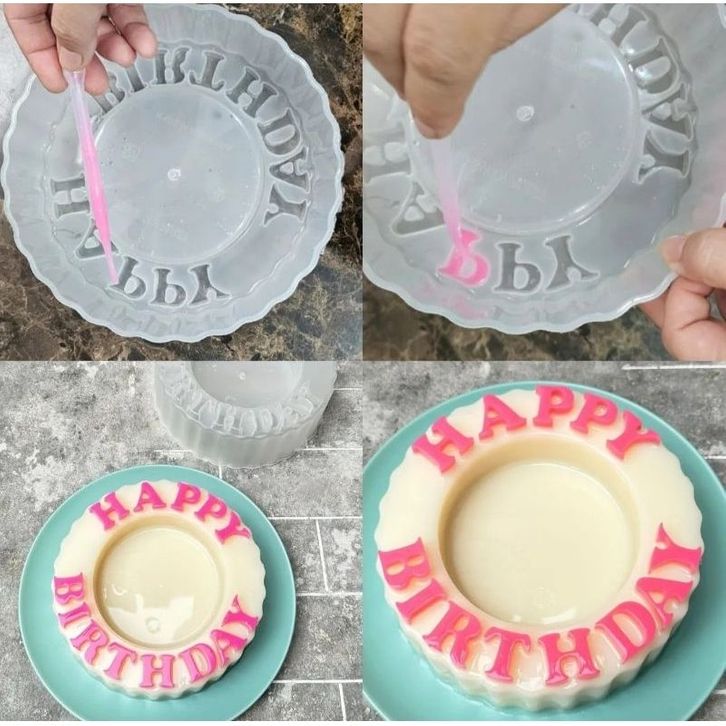 Gratis Pipet Cetakan Pudding Happy B-Irthday Plastik Premium 1,2 Liter / Cetakan Ulang Tahun Bolu Kukus / Cetakan Kue