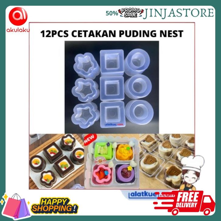 12Pcs Cetakan Puding Viral Cetakan Puding Nest Plastik Kue Bolu Lubang Bentuk Kotak Bulat Bunga