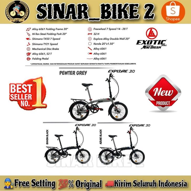 TERBARU Sepeda Lipat EXOTIC EXPLORE 3.0 Ukuran 16 Inch 7 Speed Boncengan Frame Alloy Dewasa Anak