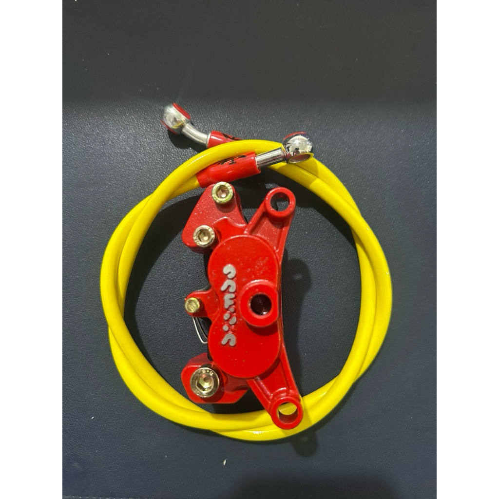 PAKETAN KALIPER BABY BREMB 4PISTON PLUS SELANG REM DEPAN CARBON MODE TDR PANJANG 95CM UNIVERSAL COCOK SEMUA MOTOR